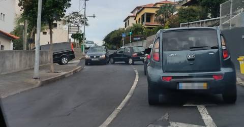 Duas viaturas ligeiras colidiram, esta manhã, na rua João Paulo II, no Funchal.