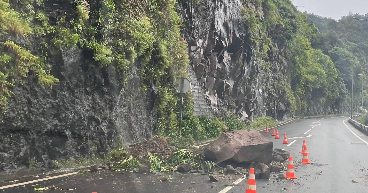 Uma derrocada registada na manhã deste sábado na zona do Faial, concelho de Santana, obrigou à interrupção de um dos sentidos de circulação na Estrada Regional.