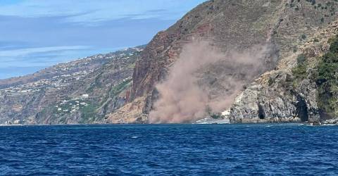 Uma derrocada de grandes dimensões foi registada esta manhã na zona da Banda de Além, perto da praia da Madalena do Mar.