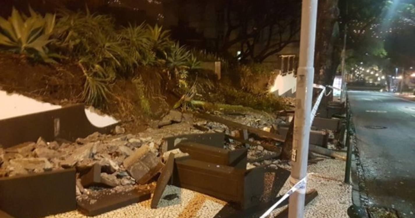 A chuva intensa deverá ter provocado um deslizamento de terra que provocou a cisão da muralha que delimitava a propriedade.