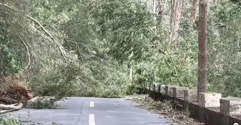 Um internauta registou, em vídeo, o momento da queda dos galhos, que, como é possível observar, aqui, deixou a estrada completamente bloqueada.