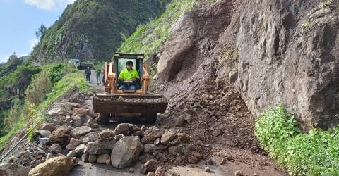 Uma derrocada de pedras e terra está a condicionar fortemente a circulação na estrada da Fajã do Mar, no Faial, concelho de Santana.