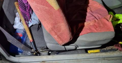 Segundo a força policial, durante a abordagem e busca à viatura, “foram localizados objetos de natureza proibida pela sua utilização indevida, todos em local acessível ao condutor e passageiros, nomeadamente um taco de basebol, uma faca e um machado. Adicionalmente, o suspeito encontrava-se na posse de uma navalha, a qual também foi apreendida”.