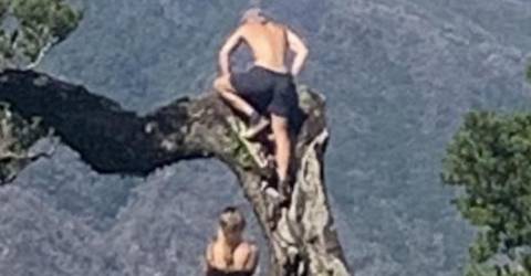 Uma imagem partilhada esta sexta-feira nas redes sociais mostra um homem a escalar uma árvore centenária no Fanal, enquanto uma mulher fotografa o momento. A publicação teve dezenas de reações e partilhas, e surge acompanhada de um apelo para o respeito pelo património natural da região.