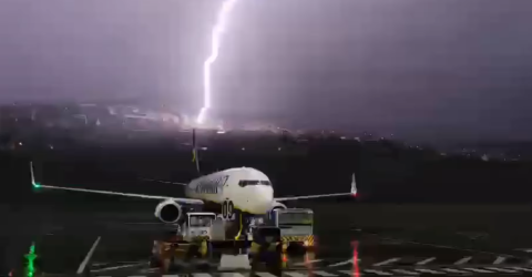 Um vídeo divulgado nas redes sociais na manhã desta terça-feira mostra o momento da queda de um raio junto ao Aeroporto da Madeira, em Santa Cruz.