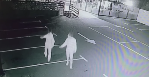 Dois indivíduos do sexo masculino, com idades na casa dos 20 anos, foram filmados a roubar as caixas de moedas de máquinas de brindes pela calada da noite.