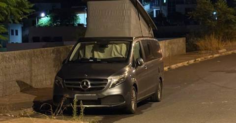 De acordo com testemunhas oculares, que enviaram a foto do sucedido ao Jornal, uma viatura foi estacionada num miradouro e coberta com tecidos para servir de ‘tenda de campismo’.