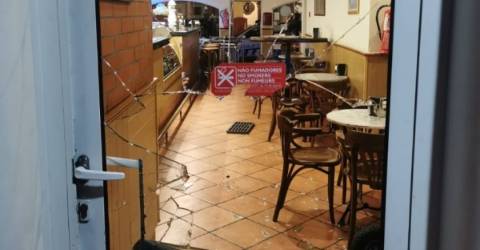 Na cafetaria, os assaltantes partiram o vidro da porta a fim de poderem invadir o espaço, do qual subtraíram o fundo de caixa e algumas garrafas.