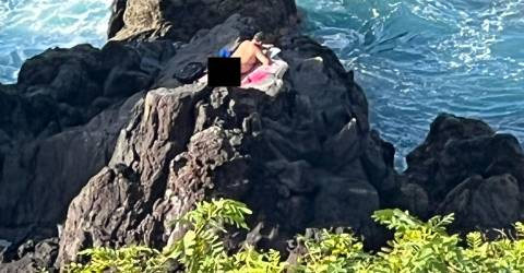 Um homem terá sido visto a fazer praia em nudismo numa zona de rocha, despertando a curiosidade de quem passava pelo local.