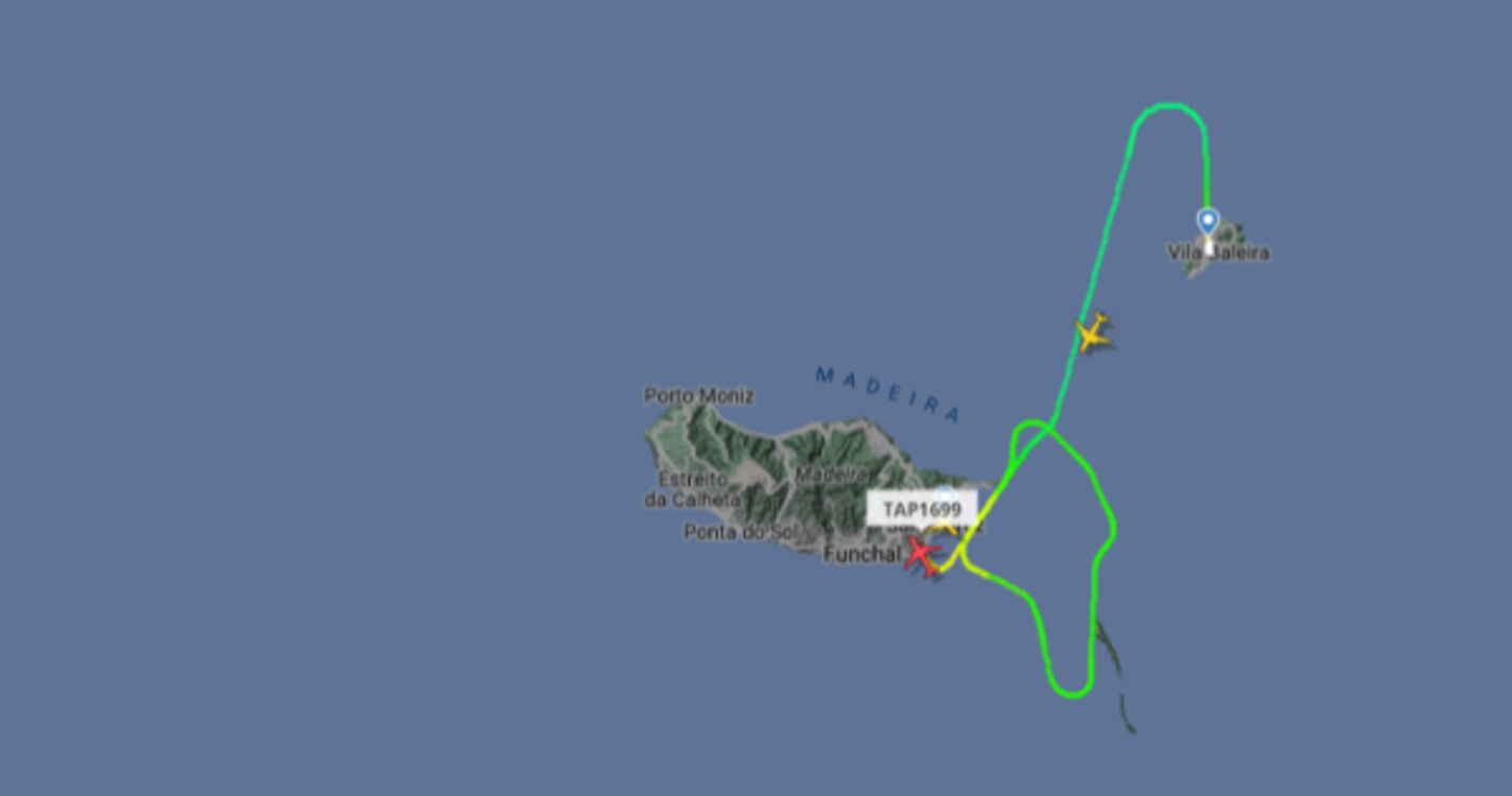 Um avião da TAP (TAP 1699 com origem no Porto Santo), está, nesta manhã de sexta-feira, às voltas no espaço aéreo madeirense, conforme é visível pelo site FlightRadar 24. A aeronave está com dificuldades em aterrar.