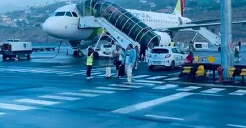 Passageiros da TAP aterraram, esta manhã, no Aeroporto da Madeira, onde à chegada se viram ‘obrigados’ a apanhar chuva.