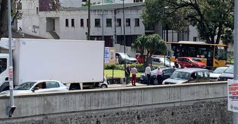Apesar da ocupação da faixa de rodagem por parte do automóvel pesado, o trânsito está a fluir normalmente.