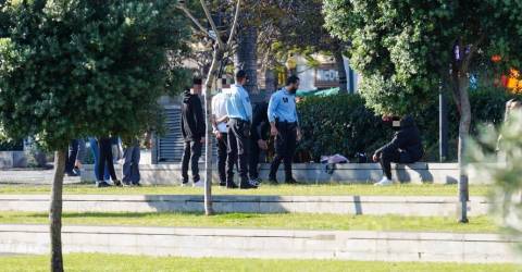 Sob o olhar curioso de alguns transeuntes, os agentes da PSP dialogaram demoradamente com os jovens, enquanto outros agentes procediam à revista minuciosa dos pertences dos mesmos.