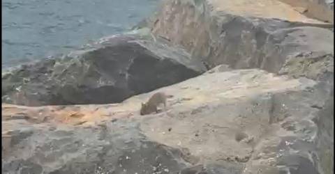 Um vídeo enviado ao JM, que aqui partilhamos, mostra roedores a andarem de um lado para o outro, entre as pedras, enquanto algumas pessoas desfrutam os banhos.