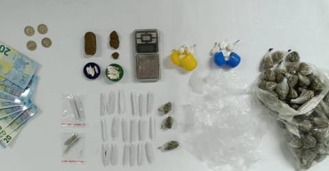 De acordo com uma nota divulgada pela PSP, os detidos “tinham na sua posse um total de 103,40 doses de haxixe, 104,6 gramas de canabinoides sintéticos denominado ‘gorby mix’, 17,8 gramas de Alpha PHP (vulgo ‘bloom’), 204 euros em dinheiro, uma balança de precisão e vários recortes de plástico usados no embalamento de estupefaciente”.