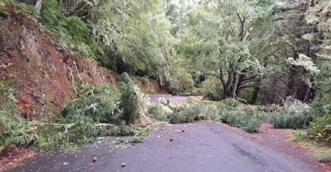 Galhos de uma árvore caíram esta manhã na zona das Quatro Estradas, Meia Serra, condicionando o acesso rodoviário naquele local.