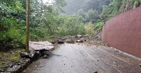 A Estrada do Lombo Galego, em Santana, encontra-se condicionada depois de uma derrocada de pedras.