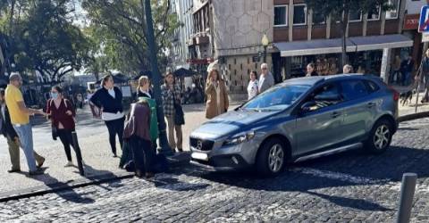 Segundo testemunhas oculares, a queda terá ocorrido após a vítima ter saído do interior de um veículo, tendo tropeçado no passeio.