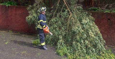 As 12 ocorrências de várias tipologias dizem respeito a 2 queda de blocos e movimento de massas, 4 limpeza de vias e sinalização, 4 quedas de árvores e 2 Inundações, acrescenta a mesma nota.