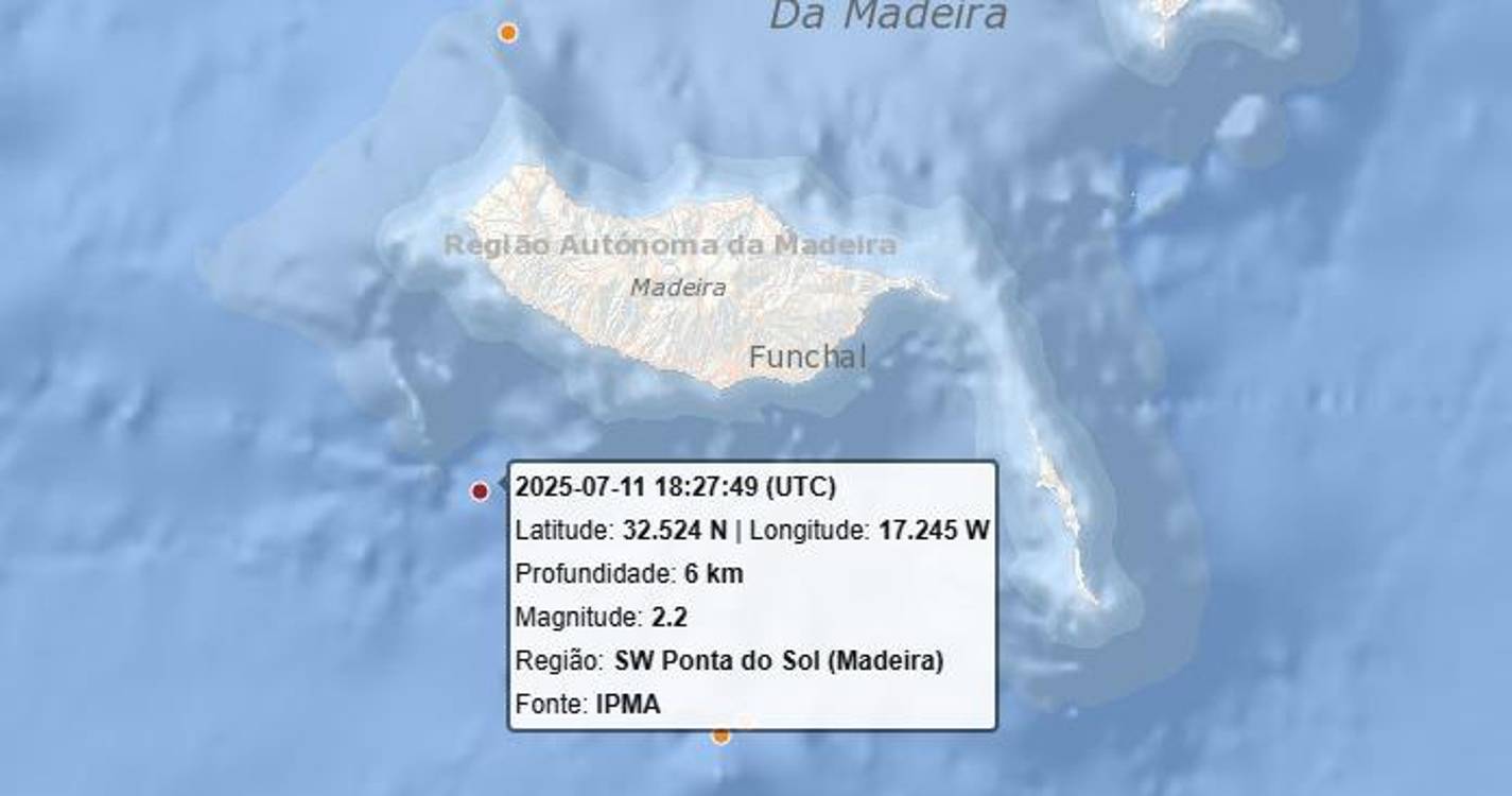 Foi ontem à tarde registado, pelo Instituto Português do Mar e da Atmosfera (IPMA), um sismo de magnitude 2.2 na escala de Richter, a sudoeste da Ponta do Sol.