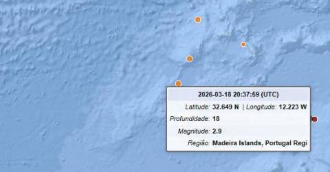 Foi registado, ontem à noite, um sismo de magnide 2.9 na escala de Richter, ao largo da Madeira.