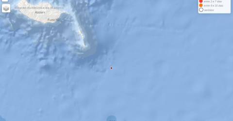 Um sismo de magnitude 2,4, na escala de Richter, foi registado este domingo de madrugada, pelo IPMA, a sueste das Desertas.