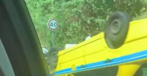 Houve um acidente, no início da tarde, em São Vicente, antes da rotunda do Laranjal. Um táxi capotou, sendo que o condutor - e único ocupante do veículo - ficou com ferimentos ligeiros.