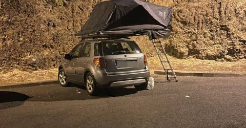 A imagem foi enviada ao Jornal por volta das 23h40, hora em que um carro se encontrava estacionado, no referido ponto turístico, com uma tenda montada em cima.