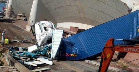 O acidente ocorrido esta manhã na via rápida, junto ao Aeroporto Internacional Cristiano Ronaldo, no sentido Funchal - Machico, que tirou a vida a um condutor de cerca de 50 anos, provocou ainda ferimentos ligeiros num homem que se encontrava a trabalhar no cais, onde caiu o camião.