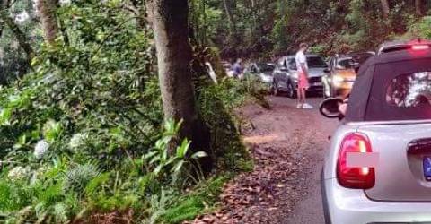 O trânsito no acesso ao Parque Florestal das Queimadas esteve, esta manhã, caótico.