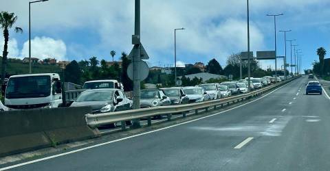 Informação oficial da Vialitoral dá conta de que a fila de carros em marcha lenta estende-se ao longo de 1.2km.