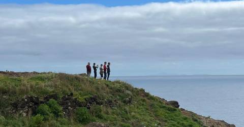 Um grupo de turistas foi, esta manhã, filmado a ignorar a sinalização de perigo exposta no Miradouro do Guindaste e a subir o muro para se deslocar à beira do precipício com o intuito de tirar fotografias.