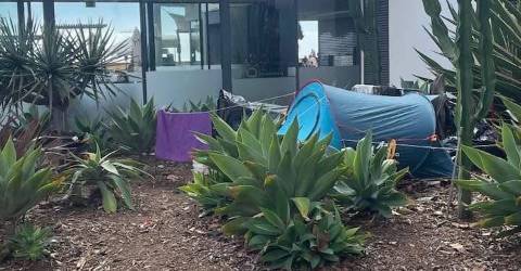 É mais um caso de acampamento “selvagem” em pleno Funchal, hoje denunciado por um leitor do JM. Não é a primeira vez que turistas instalam tendas junto ao teleférico, numa zona próxima das paragens dos autocarros da SAM, na Avenida do Mar e das Comunidades Madeirenses, a poucos metros da estação de partida.