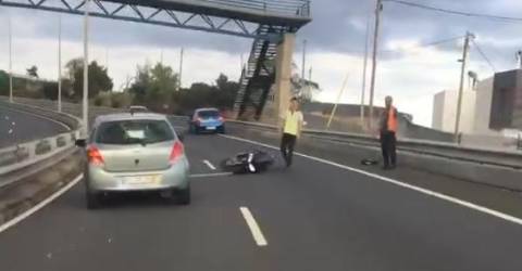 Já na via rápida, na zona entre o Caniço e Porto Novo, no sentido Caniço-Machico, uma mota e um carro provocaram outro acidente, uma colisão em plena faixa de rodagem, acabando por projetar o motociclista para uma zona do jardim, já fora de estrada. O motociclista foi ajudado por outros condutores, ainda antes da chegada das equipas de socorro. Segundo apurou o JM, a vítima estava com traumatismos nos membros inferiores, foi devidamente socorrida e transportada ao hospital. A EMIR também esteve neste local.
