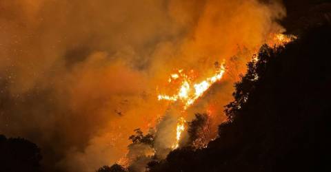 Depois de períodos de acalmia durante a tarde, as chamas voltaram a lavrar com alguma intensidade na vertente leste do vale da Ribeira Brava.