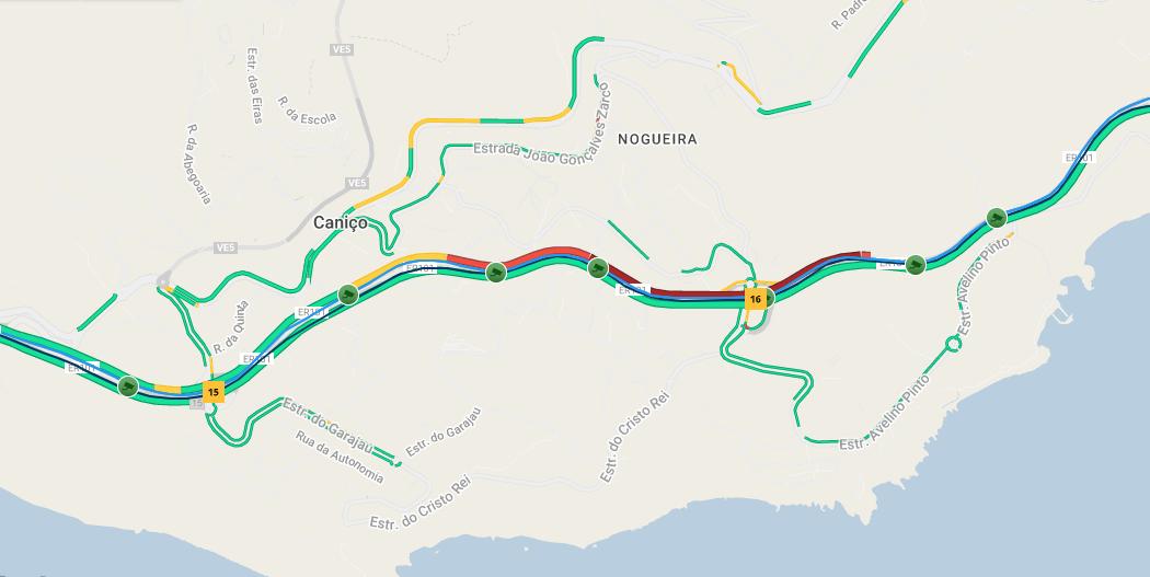 Segundo a app Info Vias, o congestionamento estende-se entre o km 25.7 e 24.2 da via rápida, entre o Porto Novo e o Caniço.