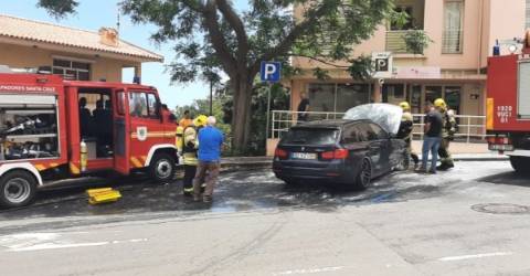 Um incêndio deflagrou numa viatura no centro do Caniço, esta quinta-feira.