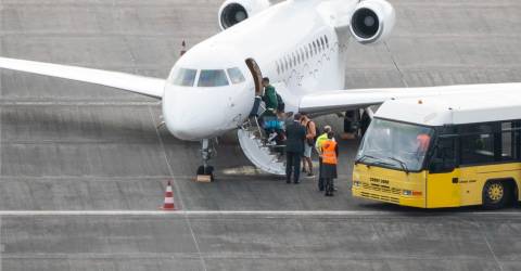 Junto da aeronave foi visível a presença da tripulação, distinguindo-se, entre estes membros, três pilotos. Cristiano Ronaldo e família chegaram depois num autocarro de serviço do aeroporto, colocado muito próximo das escadas, inclusive impedindo a total visualização dos movimentos.