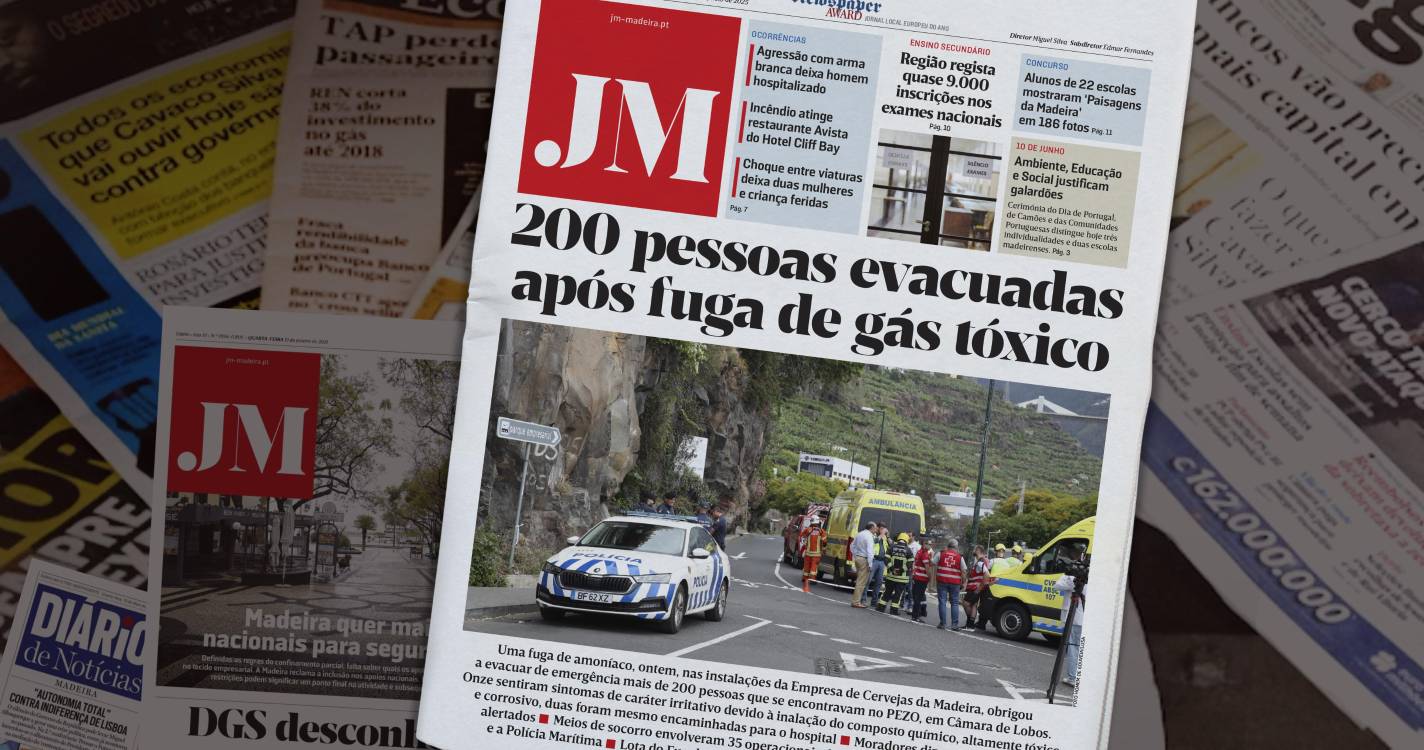 É esta a manchete de hoje do JM, numa Primeira Página que destaca ainda a agressão com arma branca deixa homem hospitalizado; o incêndio que atingiu o restaurante Avista do Hotel Cliff Bay; e o choque entre viaturas deixa duas mulheres e criança feridas.