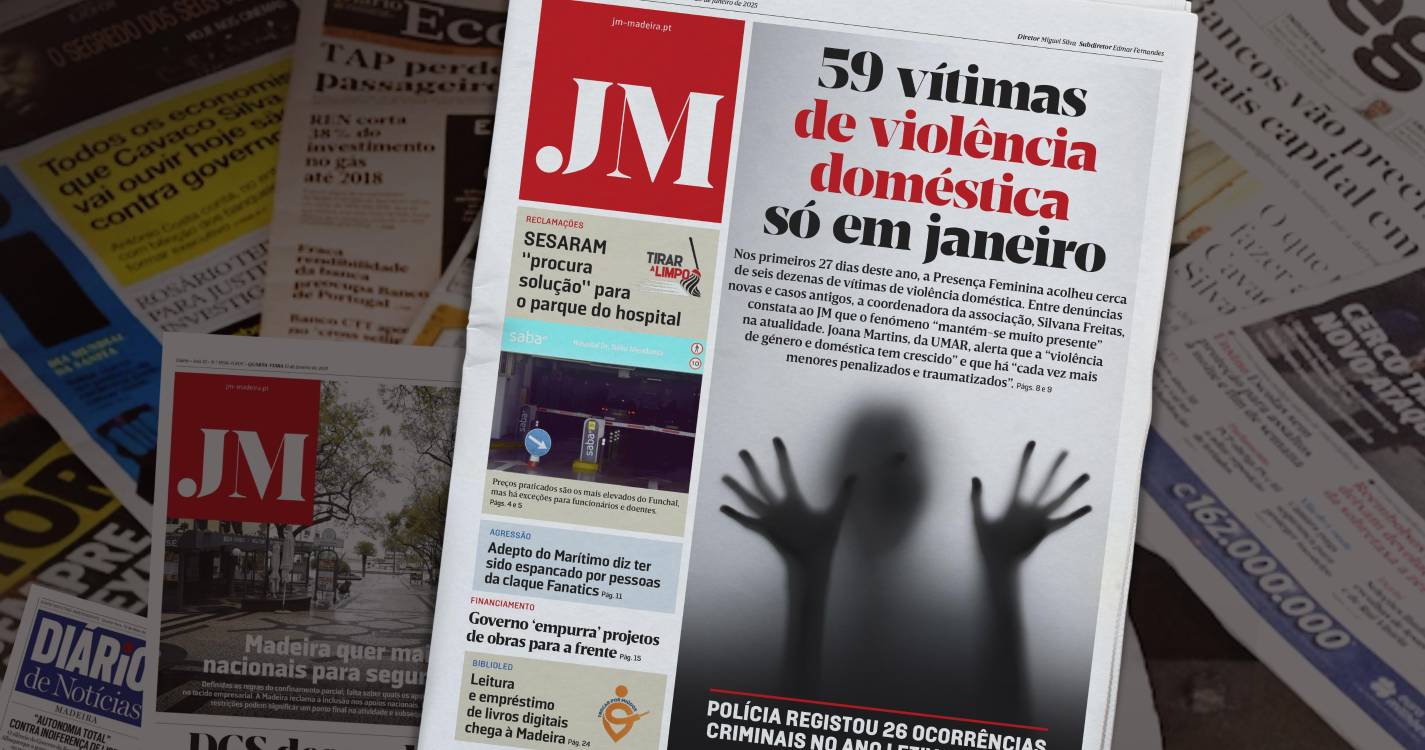 A manchete de hoje do JM dá destaque ao drama da violência doméstica na Madeira.