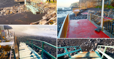 Devido à forte ondulação registada durante o fim-de-semana e especialmente na passada madrugada, alguns equipamentos de circulação e de acesso à Praia Formosa sofreram danos.