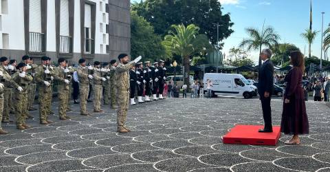 Pedro Aguiar-Branco foi recebido pela presidente da Assembleia Legislativa da RAM, Rubina Leal, momentos antes do início das comemorações do aniversário da Autonomia. Após as honras militares, ambos os representantes dos parlamentos subiram e estiveram com os representantes parlamentares dos partidos PSD, JPP, Chega e Iniciativa Liberal.