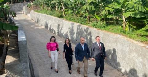 Pedro Coelho, Presidente da Câmara Municipal de Câmara de Lobos, esteve, esta tarde, em visita ao recém-concluído alargamento do caminho do Lagar da Giesta, uma obra que se insere na política de obras de proximidade promovidas pela autarquia e que serve o aglomerado populacional existente, no sentido de melhorar o acesso aos terrenos agrícolas, cujo o acesso era antes feito pela vereda existente.
