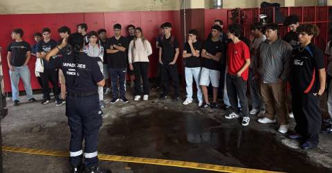 Na passada sexta-feira, dia 21 de fevereiro, os alunos do Curso Profissional de Técnico de Desporto, da turma 5 do 10.º ano de escolaridade da Escola Básica e Secundária Gonçalves Zarco (EBSGZarco), acompanhados pelos docentes Sandra Godinho (Atividades de Ginásio); José Leonardo Andrade (Área de Integração) e Luís Rodrigues (Matemática), visitaram as instalações dos Bombeiros Sapadores do Funchal.