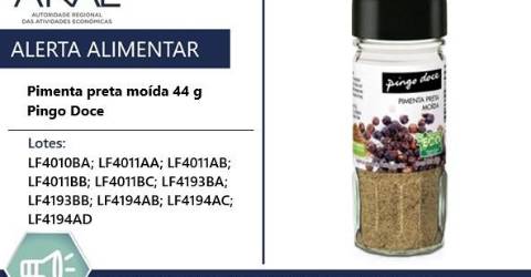 A Autoridade Regional das Atividades Económicas (ARAE) informou, esta tarde, os consumidores da Região Autónoma da Madeira sobre a emissão de uma Notificação de Alerta RASFF (Sistema de Alerta Rápido para Géneros Alimentícios e Alimentos para Animais), com origem nas autoridades francesas, relativa ao produto Pimenta Preta Moída – frasco de 44 g – marca Pingo Doce.