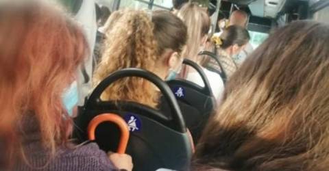 A imagem é de hoje e retrata um autocarro da Rodoeste, que cumpria a viagem das 18h30 entre o Funchal e o sítio da Caldeira, lotado de passageiros, sem o distanciamento recomendado para prevenir a propagação da covid-19.