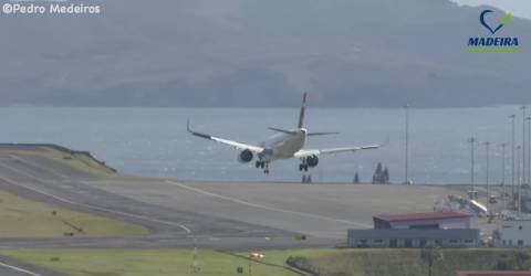 Devido ao vento forte que se faz sentir hoje na Região, uma avião da TAP protagonizou, esta manhã, uma aterragem impressionante na pista aeroporturária madeirense.