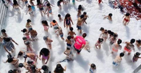 Além do banho de espuma, outras atividades lúdicas foram organizadas, como jogos ao ar livre, visionamento de um pequeno filme, dança, entre outras.