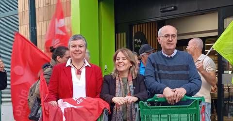 A candidatura do BE às eleições antecipadas na Madeira esteve hoje de manhã em frente a um hipermercado no Funchal, onde defendeu que a produção de riqueza na região tem de ter reflexo na vida das pessoas.