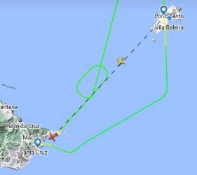 Assim sendo, apesar das tentativas para pisar o solo porto santense, a aeronave que faz ligações diárias já está de regresso ao Funchal.